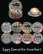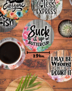 Are you tired of “Live, Laugh, Love”? We are too. Give your guests something to actually talk about while they’re busy not ruining your furniture. This 8-Piece Sarcastic Wooden Coaster Set is designed for the home that appreciates a side of snark with its morning caffeine.
