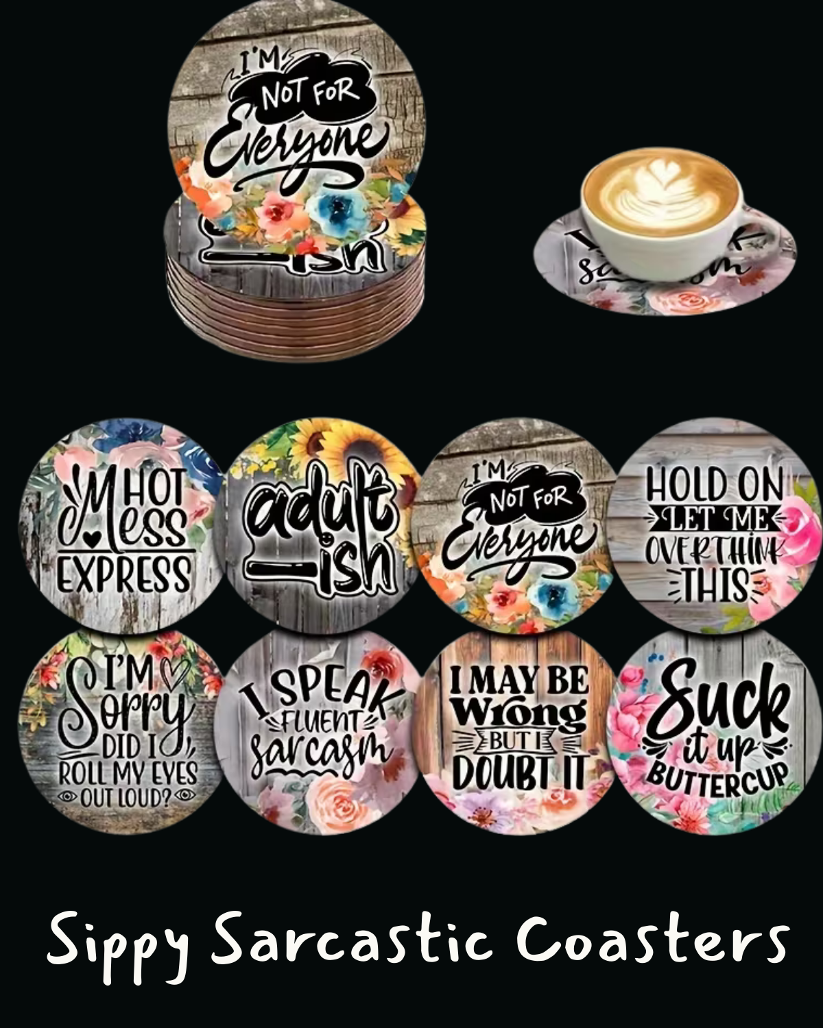 The “No-Nonsense” Vibe: Featuring 8 unique, high-definition floral designs paired with bold, sarcastic truths like “Suck it up, Buttercup” and “I may be wrong, but I doubt it.”