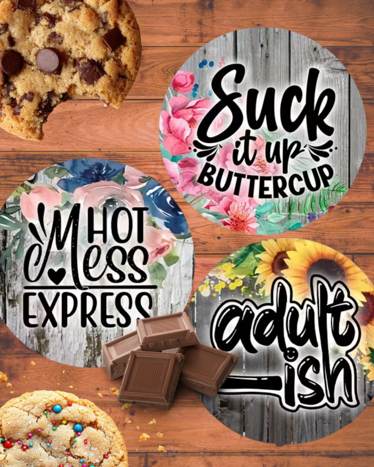 8pcs Wooden Coasters Set – Sarcastic Quotes